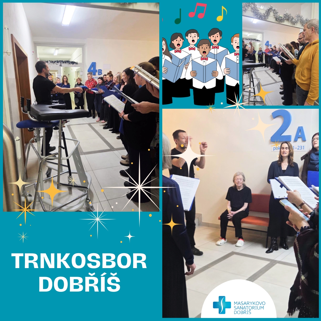 Krásnou tečkou za adventem bylo vystoupení Trnkosboru Dobříš. Sbor přišel rozezpívat naše pacienty krásnými vánočními koledami. Díky dobré akustice sváteční nálada vládla i na pokojích našich pacientů.